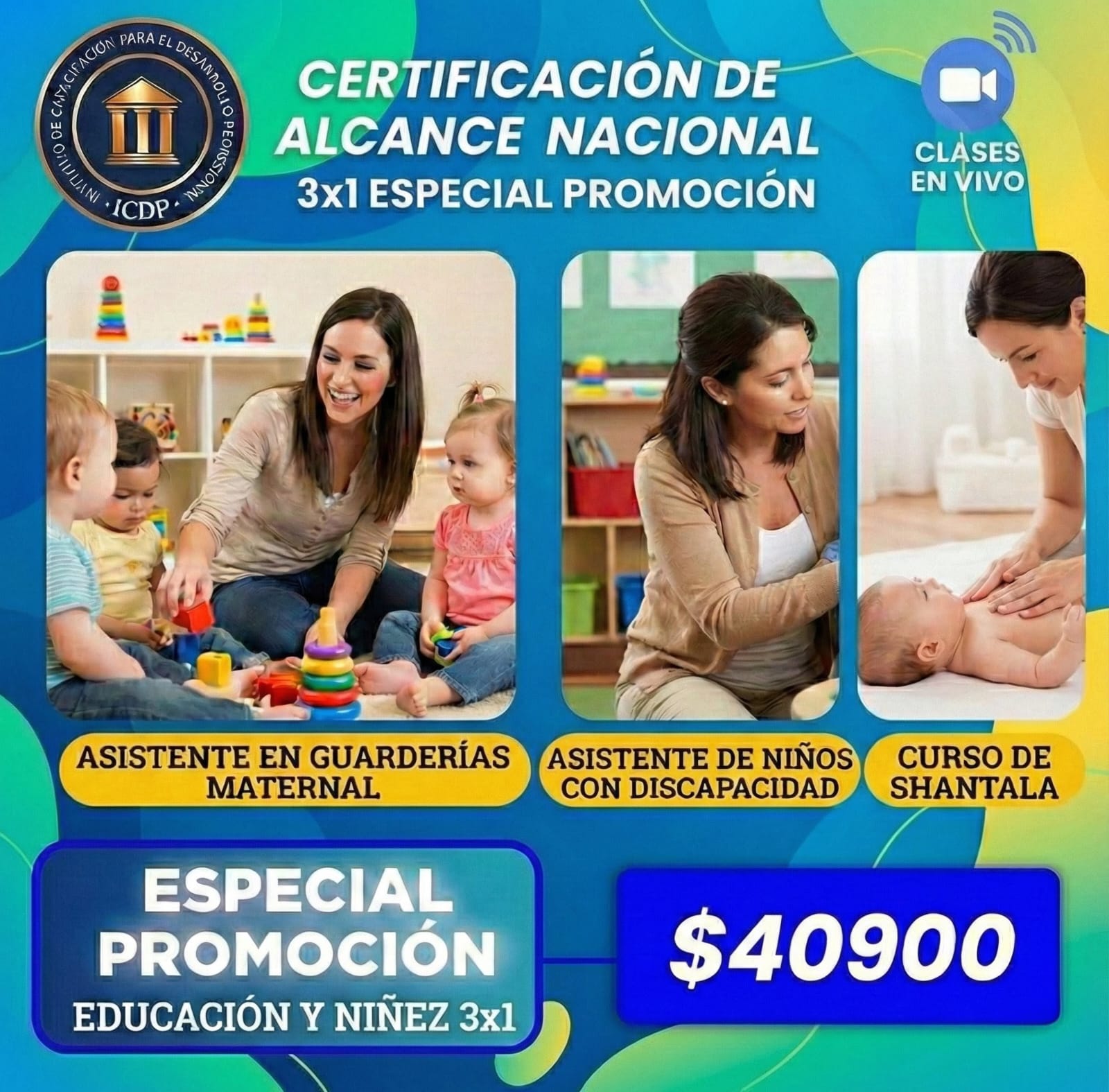 - Incluye: Asistente en Guarderías y Maternales + Asistente de Niños con Discapacidad + Shantala.